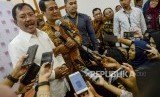Menteri Kesehatan Terawan Agus Putranto (kiri) bersama Ketua Pengurus Besar Ikatan Dokter Indonesia (PB IDI) Daeng M. Faqih (kedua kiri) memberikan keterangan kepada wartawan usai melakukan pertemuan tertutup di Jakarta, Rabu (30/10). (FOTO : Republika/Putra M. Akbar)