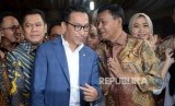 Ketua Komisi III DPR Herman Hery berbincang dengan Calon Kapolri Komjen Pol Idham Aziz didampingi para anggota komisi III usai berkunjung ke Kediaman Komjen Pol Idham Aziz di Jakarta, Rabu (30/10). (FOTO : Republika /Prayogi)