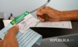 Warga mengisi formulir Badan Penyelenggara Jaminan Sosial (BPJS) Kesehatan di kantor BPJS Kesehatan Jakarta Timur, di Jakarta, Rabu (30/10). (FOTO : Risyal Hidayat/Antara )