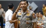 Calon Kapolri Komjen Pol Idham Aziz memberi hormat sebelum mengikuti uji kepatutan dan kelayakan dengan Komisi III DPR RI, Kompleks Parlemen, Senayan, Jakarta, Rabu (30/10). (FOTO : Republika /Prayogi)