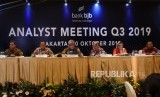 Jajaran Direksi Bank BJB pada pelaksanaan analyst meeting Bank BJB Q3 2019 di Jakarta, Rabu (30/10). (FOTO : Yogi Ardhi/Republika)