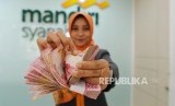 Teller menghitung uang di Bank Syariah Mandiri (Mandiri Syariah) Kantor Cabang Mayestik, Jakarta, Rabu (30/10). (FOTO : Republika/Edwin Dwi Putranto)