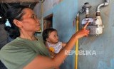Ibu rumah tangga memperhatikan meter ukur sambungan gas PT PGN (Perusahaan Gas Negara) saat uji coba Sambungan Gas Rumah Tangga di Kampung Toyomerto, Serang, Banten, Rabu (30/10/2019). (FOTO : ASEP FATHULRAHMAN/ANTARA FOTO)