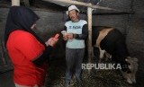 Petugas menginput data anggota koperasi peternak sapi menggunakan aplikasi Sakti Link saat transaksi di Samiran, Selo, Boyolali, Jawa Tengah, Rabu (30/10/2019). (FOTO : Aloysius Jarot Nugroho/ANTARA FOTO)