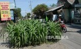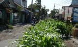 Tanam Jagung di Lahan Proyek. Tanaman jagung tumbuh subur pada lahan proyek drainase di Jalan Babaran, Yogyakarta, Kamis (31/10/2019). (FOTO : Republika/ Wihdan)