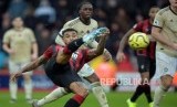 REPUBLIKA.CO.ID, BOURNEMOUTH -- Manchester United gagal meneruskan tren kemenangan tandang mereka, usai ditaklukan Bournemouth 1-0, Sabtu (2/11). Bertandang ke Vitality Stadium, MU kesulitan menjebol gawang tuan rumah yang bertahan dengan sangat baik. Sementara Bournemouth mampu memanfaatkan peluang emas pertama mereka menjadi gol.,,