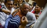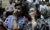Kerabat dari Direktur Utama PT PLN Sofyan Basir menangis usai pembacaan putusan di Pengadilan Tipikor, Jakarta, Senin (4/11). (FOTO : Republika/Putra M. Akbar)