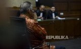 Mantan Direktur Utama PT PLN Sofyan Basir berdoa usai pembacaan putusan di Pengadilan Tipikor, Jakarta, Senin (4/11). (FOTO : Republika/Putra M. Akbar)