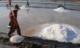 Pekerja mengangkut garam saat panen di Desa Bunder, Pamekasan, Jawa Timur, Senin (4/11/2019). (FOTO : SAIFUL BAHRI/ANTARA FOTO)