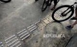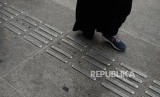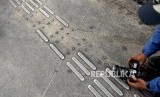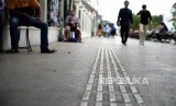 Beberapa Guiding block di jalur pedestrian di pedestrian Benteng Vredeburg, Yogyakarta, hilang. Menurut Forum Pemantau Independen (Forpi) sebanyak 131 Guiding Block hilang mulai Pasar Sore hingga pojok Benteng Vredeburg. Wihdan/ Republika