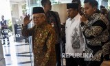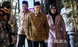 Wakil Presiden RI Ma'ruf Amin berjalan keluar usai menghadiri World Zakat Forum di Crowne Plaza Hotel, Kota Bandung, Selasa (5/11). (FOTO : Abdan Syakura)