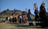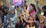 REPUBLIKA.CO.ID, MAGELANG -- Anak-anak membawa wayang untuk karnaval di Candi Borobudur, Magelang, Jawa Tengah, Kamis (7/11/2019).