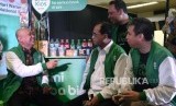 Menteri Koperasi dan Usaha Kecil dan Menengah Teten Masduki (kiri) berbincang dengan Menteri Perhubungan Budi Karya Sumadi (tiga kanan) dan President of Grab Indonesia Ridzki Kramadibrata (kanan) usai peresmian Hari Warung Nasional sekaligus peluncuran GrabKios di Jakarta, Kamis (7/11). (FOTO : Republika/Prayogi)