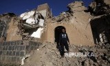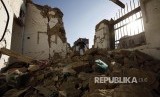 Reruntuhan sisa perang di Kota Sana'a, Yaman, konflik senjata terjadi antara pasukan pemerintah yang didukung koalisi Arab Saudi dengan pasukan separatis Houthi di selatan Yaman (FOTO : EPA-EFE/Yahya Arhab)