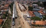 REPUBLIKA.CO.ID, BANDUNG -- Foto udara suasana SMPN 1 Ngamprah yang berdekatan dengan proyek kereta cepat di Ngamprah, Kabupaten Bandung Barat, Kamis (7/11).