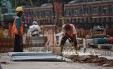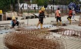 REPUBLIKA.CO.ID, JAKARTA -- Pekerja menyelesaikan proyek pembangunan jalan inspeksi di Jalan Kemuning, Pasar Minggu, Jakarta, Selasa (12/11/2019).