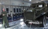 Anggota Royal Air Force (RAF) Inggris berjaga di dalam pesawat AIRBUS A400M di Bandara Halim Perdana Kusuma, Jakarta, Selasa (12/11/2019). (FOTO : Antara/Nova Wahyudi)