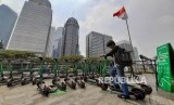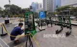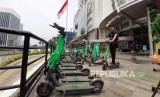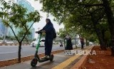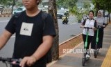 Sejumlah warga menggunakan skuter listrik di kawasan FX Sudirman, Jalan Sudirman, Jakarta, Rabu (13/11). (FOTO : Republika)