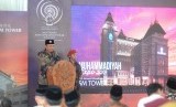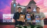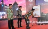 Peluncuran SM Logistik. Ketua Umum PP Muhammadiyah Haedar Nashir (kanan) meluncurkan SM Logistik di sela peletakan batu pertama pembangunan Menara Suara Muhammadiyah (SM) di Yogyakarta, Ahad (17/11). (FOTO : Republika/ Wihdan)