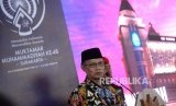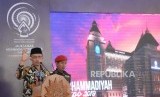REPUBLIKA.CO.ID, YOGYAKARTA -- Ketua Umum PP Muhammadiyah Haedar Nashir menyampaikan sambutan sebelum peletakan batu pertama pembangunan Menara Suara Muhammadiyah (SM) di Yogyakarta, Ahad (17/11).