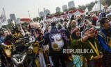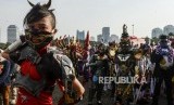 Cosplayer saat menghadiri acara Jakarta Cosplay Parade 2019 di kawasan Monumen Nasional (Monas), Jakarta, Ahad (17/11). (FOTO : Republika/Putra M. Akbar)