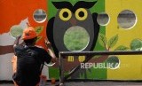 REPUBLIKA.CO.ID, JAKARTA -- Petugas PPSU kelurahan Pondok Bambu membuat mural di tembok halte sepeda kawasan Banjir Kanal Timur (BKT), Jakarta, Rabu (20/11).