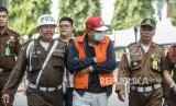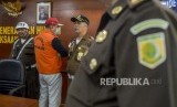 REPUBLIKA.CO.ID, JAKARTA -- Buronan koruptor Atto Sakmiwata Sampetoding digiring petugas saat konferensi pers terkait buronan koruptor di Kejaksaan Agung RI, Jakarta, Kamis (21/11/2019).