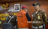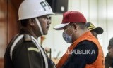 Buronan koruptor Atto Sakmiwata Sampetoding (tengah) digiring petugas usai konferensi pers terkait buronan koruptor di Kejaksaan Agung RI, Jakarta, Kamis (21/11/2019). (FOTO : Republika/Putra M. Akbar)