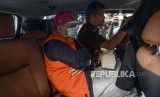 Buronan koruptor Atto Sakmiwata Sampetoding menaiki mobil usai konferensi pers terkait buronan koruptor di Kejaksaan Agung RI, Jakarta, Kamis (21/11/2019). (FOTO : Republika/Putra M. Akbar)