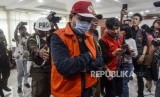 Buronan koruptor Atto Sakmiwata Sampetoding (tengah) digiring petugas saat konferensi pers terkait buronan koruptor di Kejaksaan Agung RI, Jakarta, Kamis (21/11/2019). (FOTO : Republika/Putra M. Akbar)