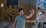 Warga berswafoto di dekat karya seni yang terpajang di terowongan Kendal, Sudirman, Jakarta, Ahad (24/11). (FOTO : Republika/Putra M. Akbar)