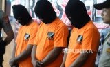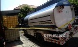 REPUBLIKA.CO.ID, YOGYAKARTA -- Petugas memasang tanda barang bukti saat pengungkapan peredaran BBM ilegal di Polda DIY, Relasa (27/11).