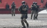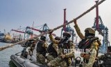 REPUBLIKA.CO.ID, JAKARTA -- Pasukan Kopaska Koarmada I bergerak untuk melakukan penyergapan pada saat Latihan Operasi Dukungan Integrasi Pasukan Khusus Laut Tahun 2019 di di Dermaga JICT II Tanjung Priok, Jakarta, Kamis (28/11/2019).