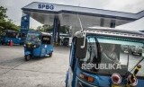 Sejumlah bajaj antre untuk pengisian bahan bakar gas di SPBG PGN Klender, Jakarta, Jumat (29/11/2019). (FOTO : Aprillio Akbar/ANTARA FOTO)