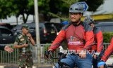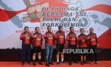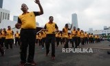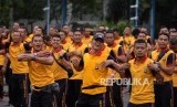 Anggota kepolisian dan TNI mengikuti kegiatan Olahraga Bersama TNI Polri di Polda Metro Jaya, Jakarta, Sabtu (30/11). (FOTO : Thoudy Badai_Republika)