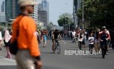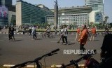 Warga berolahraga saat Car Free Day di kawasan Bundaran HI, Jakarta, Ahad (1/12). (FOTO : Republika/Prayogi)