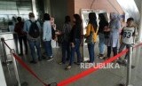 Penumpang membeli tiket kereta Light Rail Transit (LRT) di Stasiun Velodrome Rawamangun, Jakarta, Ahad (1/12). (FOTO : Republika/Prayogi)
