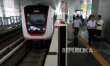 Penumpang bersiap menaiki kereta Light Rail Transit (LRT) di Stasiun Velodrome Rawamangun, Jakarta, Ahad (1/12). (FOTO : Republika/Prayogi)