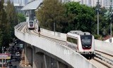Kereta Light Rail Transit (LRT) memasuki Stasiun Velodrom Rawamangun, Jakarta, Ahad (1/12). (FOTO : Republika/Prayogi)