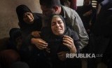 REPUBLIKA.CO.ID, JALUR GAZA -- Kerumunan sanak saudara Fahd al-Astal berkumpul di kediamannya di Khan Younis, Jalur Gaza Selatan, Palestina, Sabtu (30/11). Remaja Palestina berusia 16 tahun ini tewas diterjang peluru pasukan Zionis Israel saat mengikuti aksi Great Return March ratusan meter dari pagar dari perbatasan Gaza dan Israel pada hari sebelumnya.