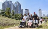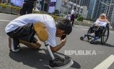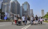 Penyandang disabulitas mengikuti gerak jalan saat Hari Bebas Kendaraan Bermotor (CFD) di kawasan Sudirman, Minggu (1/12/2019). (FOTO : MUHAMMAD ADIMAJA/ANTARA FOTO)