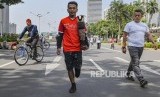 Menteri Sosial Juliari P. Batubara (kanan) bersiap melepas gerak jalan saat Hari Bebas Kendaraan Bermotor (CFD) di kawasan Sudirman, Minggu (1/12/2019). (FOTO : MUHAMMAD ADIMAJA/ANTARA FOTO)