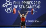 REPUBLIKA.CO.ID, JAKARTA -- Lifter Putra Indonesia Eko Yuli Irawan berhasil meraih medali emas pada cabang olahraga angkat besi kategori putra 61 kilogram di RSMC Ninoy Aquino Stadium, Manila, Filipina, Senin (2/12).