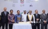 Menteri Dalam Negeri Republik Indonesia Tito Karnavian (ketiga kiri), Menteri Agraria dan Tata Ruang Sofyan Djalil (kedua kanan) bersama Duta Besar Uni Emirat Arab (UEA) Mohammed Abdulla Al Ghfeli (keempat kanan) memberikan sambutan pada peringatan Hari Nasional Uni Emirat Arab ke-48 di Hotel Four Season, Jakarta, Senin (2/12). (FOTO : Thoudy Badai_Republika)