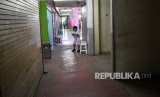 Warga beraktivitas di dekat kios-kios kosong yang disiapkan sebagai lokasi relokasi pedagang kaki lima (PKL) pakaian bekas Pasar Senen di lantai dua Pasar Kenari, Jakarta, Senin (2/12/2019). (FOTO : Antara/Aditya Pradana Putra)