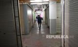 Warga melintasi kios-kios kosong yang disiapkan sebagai lokasi relokasi pedagang kaki lima (PKL) pakaian bekas Pasar Senen di lantai dua Pasar Kenari, Jakarta, Senin (2/12/2019). (FOTO : Antara/Aditya Pradana Putra)