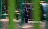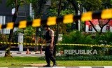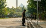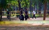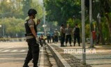 REPUBLIKA.CO.ID, JAKARTA -- Pascaledakan di Monas tampak sejumlah aparat bersenjata lengkap berjaga-jaga di lokasi kejadian. Garis polisi dipasang di beberapa bagian Taman Monumen Nasional.