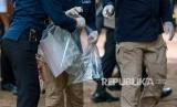REPUBLIKA.CO.ID, JAKARTA -- Tim Laboratorium Forensik Mabes Polri memeriksa tempat kejadian ledakan di Taman Monumen Nasional (Monas), Selasa (3/12).