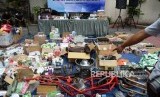 Pemusnahan Barang Milik Negara. Aneka macam barang milik negara (BMN) dihadirkan sebelum dimsunahkan di kantor Bea dan Cukai Yogyakarta, Selasa (3/12). (FOTO : Republika/ Wihdan)