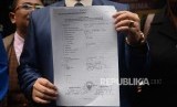 Penasihat hukum korban First Travel Pitra Romadoni Nasution bersama perwakilan korban First Travel menunjukan tanda terima penyampaian informasi di pos pelayanan hukum dan penerimaan pengaduan masyarakat kantor Kejaksaan Agung di Jakarta, Selasa (3/12). (FOTO : Republika/Prayogi)